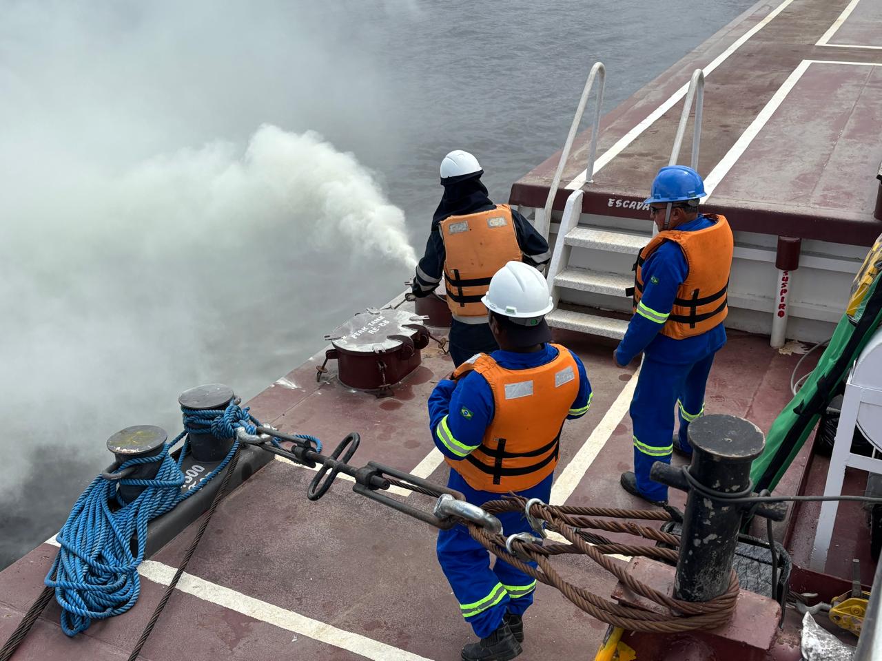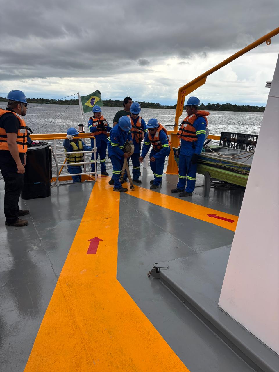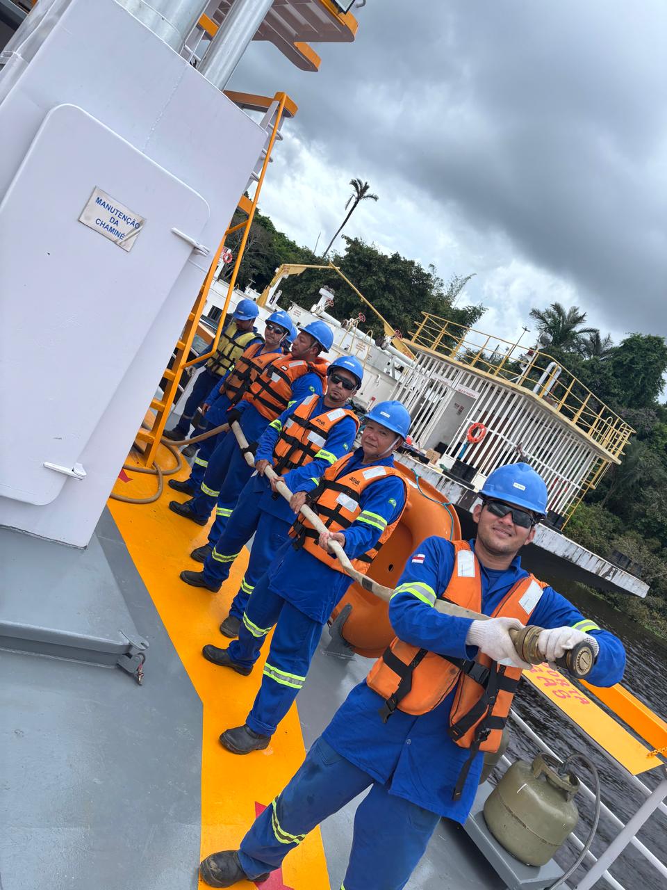 Durante o treinamento, foram abordadas técnicas de controle de incêndio, evacuação segura, manuseio de equipamentos e uso correto dos EPIs (Equipamentos de Proteção Individual). A atividade também inclui simulações práticas, que reproduziram possíveis cenários reais em embarcações e áreas operacionais.